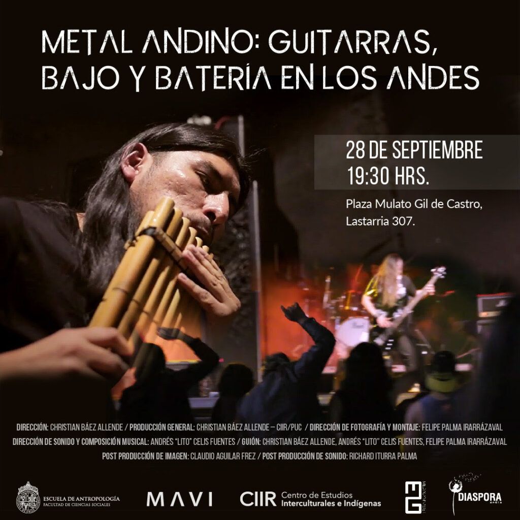 Guitarras, bajo y batería en Los Andes ofrece en el subtìtulo este documental que explora los cruces sonoros y culturales producidos en el Norte de Chile entre el heavy-metal y la música andina. Bandas de Chile, Perú y Bolivia ejemplifican este sonido, tan vivo como poco estudiado. Es música de identidad distintiva, a la vez tradicional y globalizada.